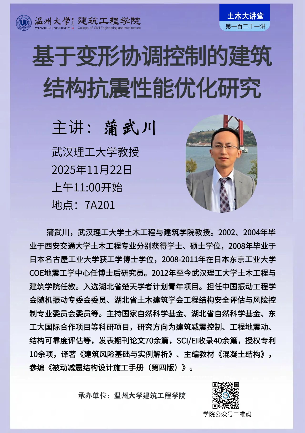 学术讲座预告:基于变形协调控制的建筑结构抗震性能优化研究