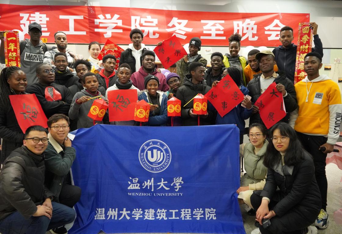 In order to show the care of our faculty and students for international students and make them more deeply experience Chinese culture, on the occasion of the traditional Chinese festival -- winter solstice, our college organized the "Winter Solstice Party of the college of Civil Engineering and Architecture " on the first floor of the college on the evening of December 20, 2019. Wang Zhuang, deputy secretary of the party committee of the college of Civil Engineering and Architecture, came to greet the students, expressed blessing, participated in the activities and take photos with the students.