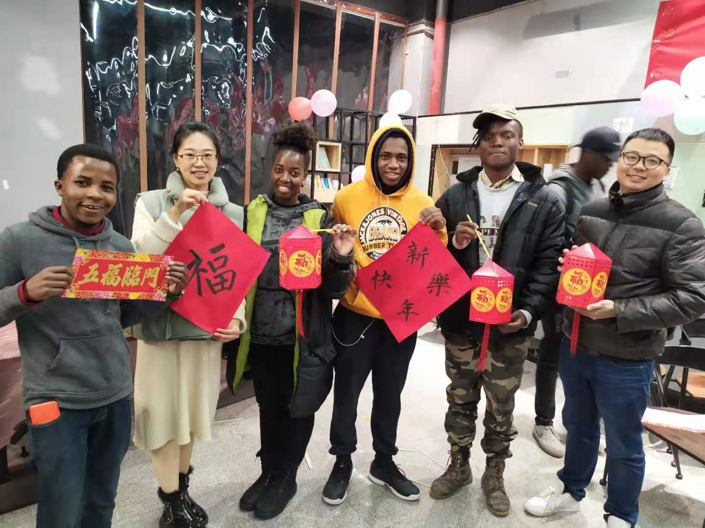 The party was jointly attended by the faculty and students of our college, Chinese and international students got together and immersed in strong festival atmosphere. At beginning of the party, Meiwei Xue, the secretary of international education, explained the origin of the Winter Solstice and food traditions. International students showed a keen interest in Chinese traditional culture, learnt how to make dumplings, use chopsticks, write FU letter, understood couplets meaning and completed handmade lanterns. Zexiang WU, deputy director of the college international education office, and Dr. Ning FAN provided guidance and help throughout the party.