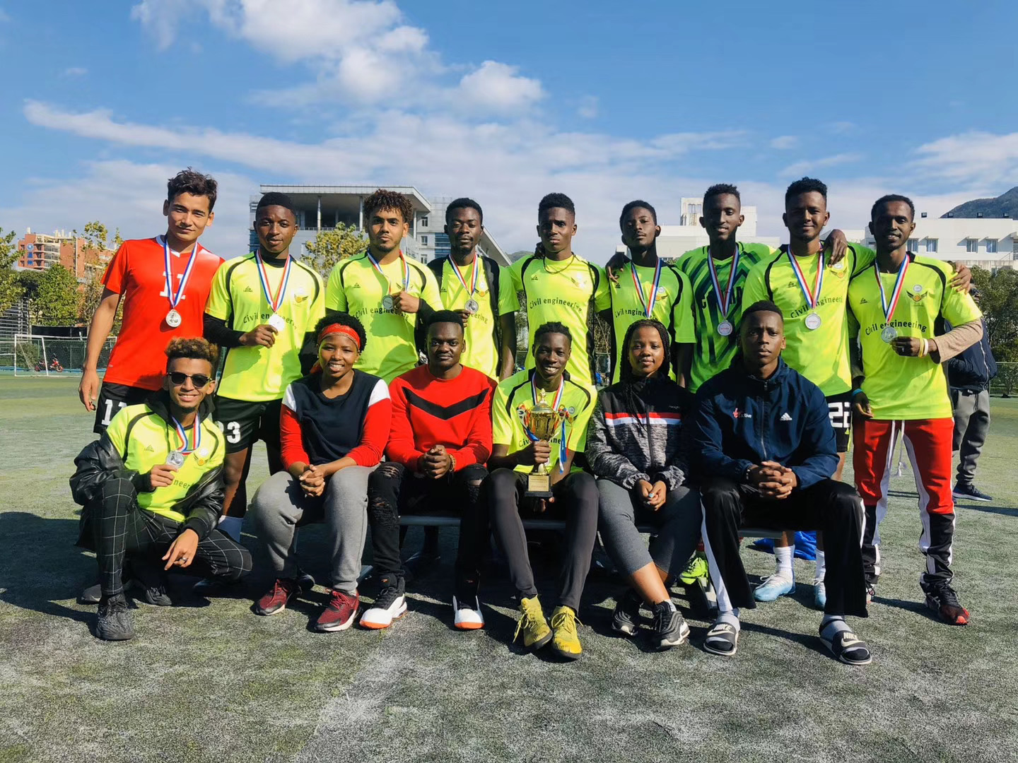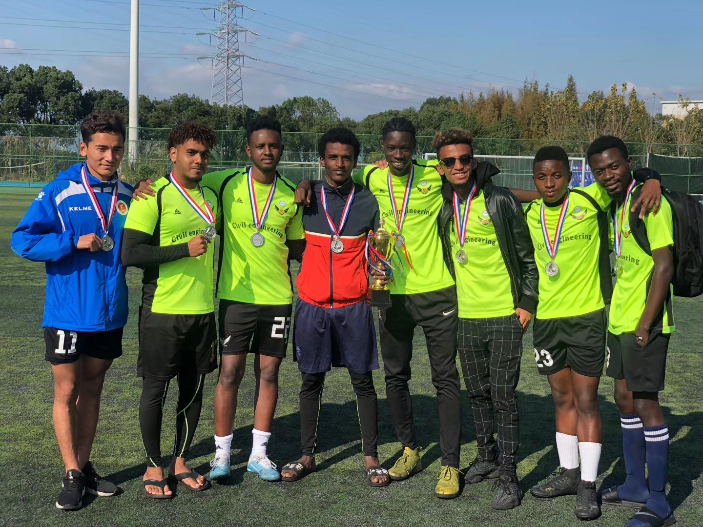 After more than one month effort, College of Civil Engineering and Architecture international students   football team got the 2nd place of Wenzhou University football match. We beat College of Mechanic