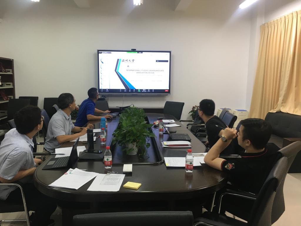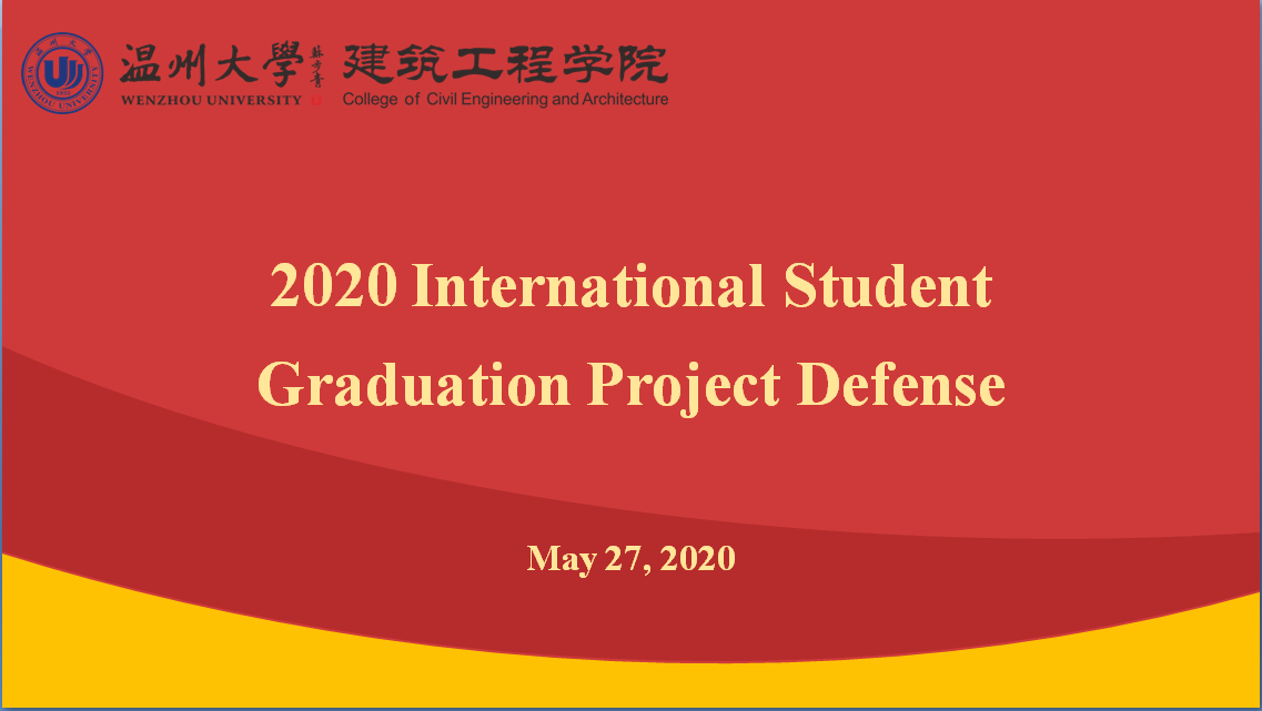 Taking into account the time difference and epidemic, College of Civil Engineering and Architecture hold Civil Engineering International Student Graduation Project Defense in 7A302 meeting room on May 27 through ZOOM app. We invite experts Zhao Junliang, Director of International Education Office of College of Civil Engineering and Architecture, professor Wang Guobo, Doctor Wu Zexiang, Doctor Ye Changpeng and Doctor Fan Ning, and defense secretary Xue Meiwei.