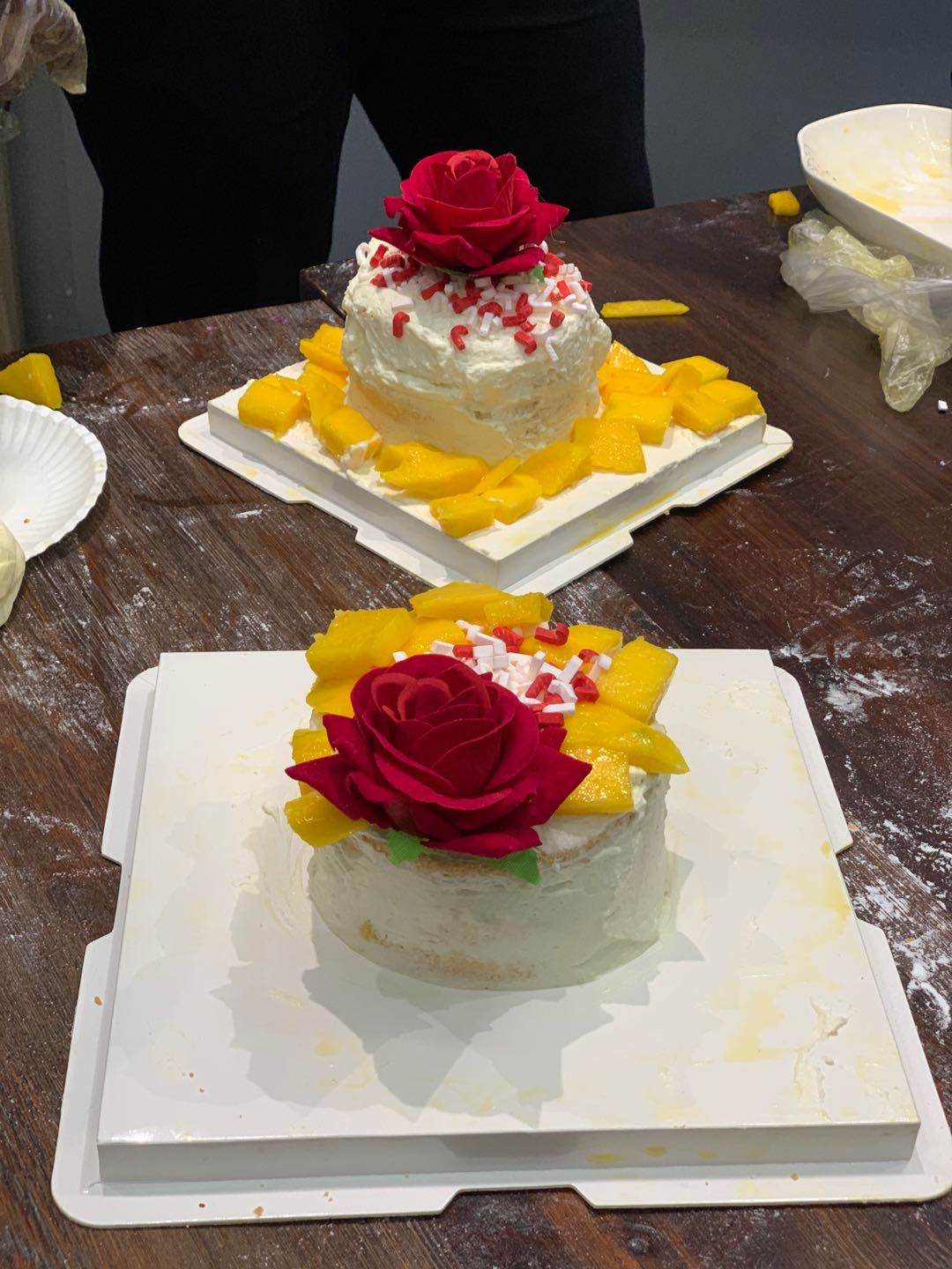 Leading by Wei Xuan, a Chinese student came from class 4 grade 2019 of Civil Engineering major, all participants joined in the procedure of making snowing moon and cream cakes. At the event site, everyone gathered around the big table, weighing and reclaiming materials, kneading the skin and pressing molds according to the process. It didn’t take long for the table to be filled with snowy moon cakes with white, sweet and delicate patterns.
