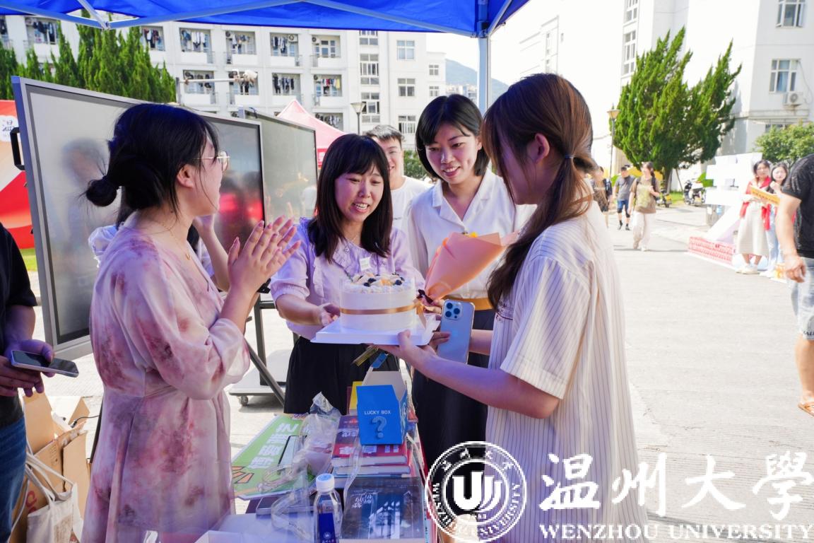 !”教育学院设计专属生日盲盒,里面装满了蛋糕和鲜花,给当天过生日的寿星和校庆日寿星送去最温暖的祝福和惊喜。