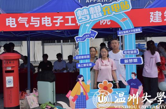 除了融合第19届杭州亚运会元素外,还将“火炬”传递搬进迎新现场,新生迈上“充电赛道”,新老生传递“火炬”,寓意着温大学子“求学问是,敢为人先”校训精神和投身科研、矢志报国精神的传递。