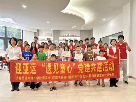 团委联合瓯海农商银行梧田支行党支部和梧田街道东瓯社区党委开展“迎亚运,遇见童心党建共建”主题活动。