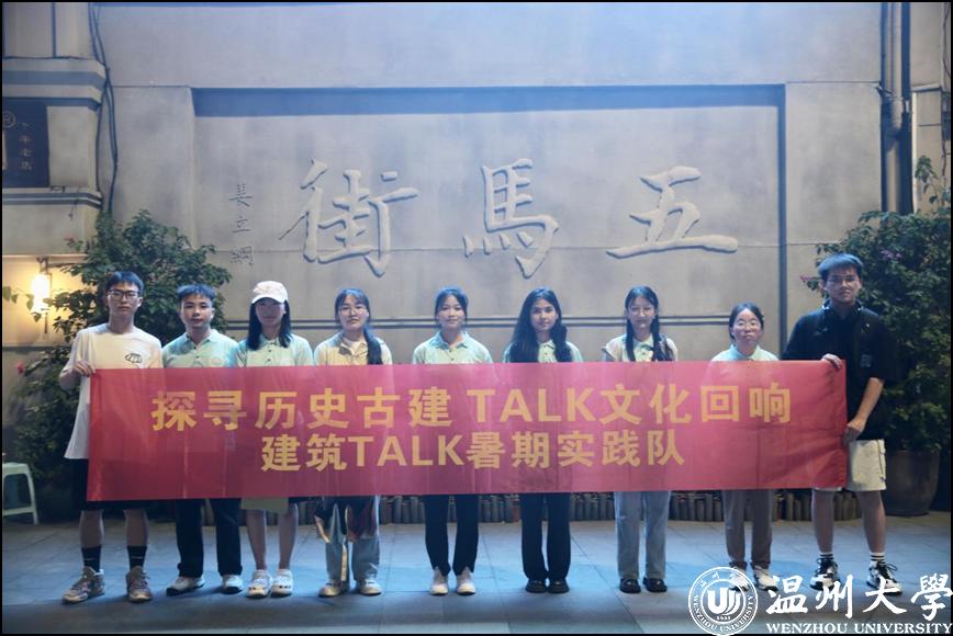 暑期实践队找寻着历史古建、传统文化载体和体现温州乡土人情的建筑,他们穿梭在城市的大街小巷,记录和学习传统建筑的造型和原理。“大家看这里,这五匹扬蹄飞奔的骏马雕像就是五马街名字的由来,青铜工艺效果和汉唐造型艺术风格透露着深厚的历史底蕴,雕塑的基座以桥为设计起点,配置以喷泉流水,突出温州水乡特色。”