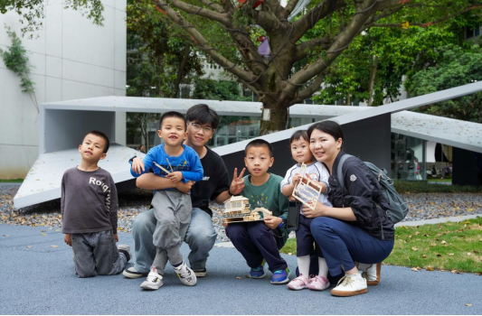 “老师,这是我们的作品!我爸爸是工程师,家里好多这样的模型,未来我也想当工程师。”一位小朋友高兴地举起自己拼接完成的模型,赢得围观群众的一片喝彩。研学课堂分为“识”与“趣”两部分,引导小朋友们理解建筑的内在美学和工程原理,提供适合孩子的游戏和实践,让小朋友在玩乐中培养自信、观察力、创造力、想象力,领略建筑与艺术的奇妙交融。