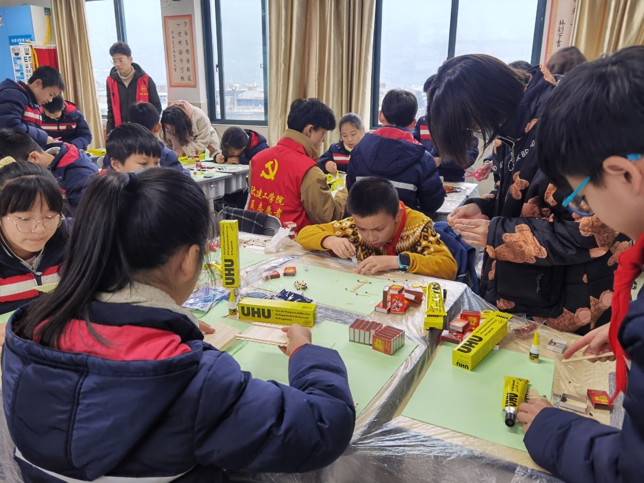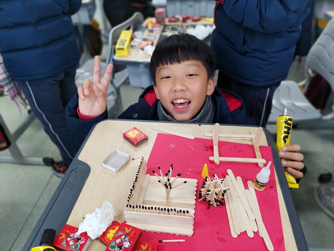 城附属学校小学生参与火柴艺术制作