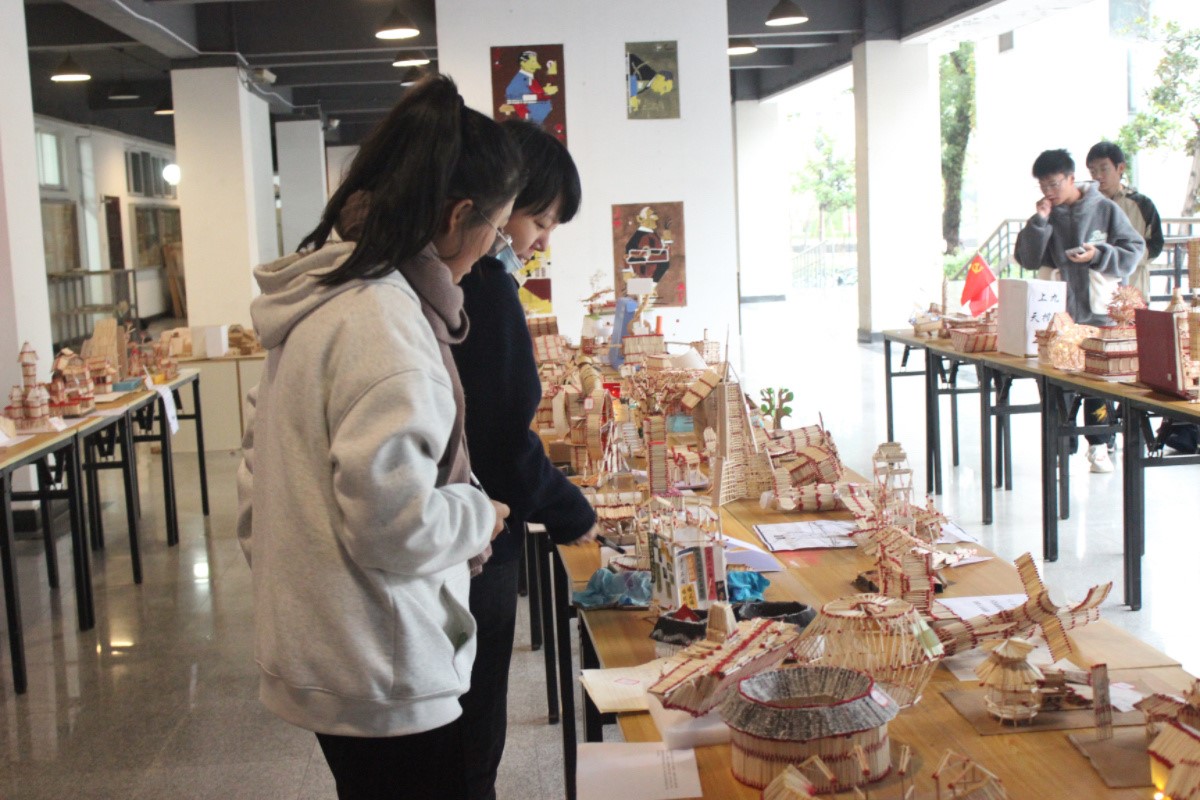 开展了一次以火柴为材料的创意作品展,这些作品全部都是用火柴搭建,凝聚了同学们的智慧和想象力,其中不仅有建筑模型,还有航天模型,体现了不同的主题,同时也将同学们的奇思妙想体现在作品当中。
