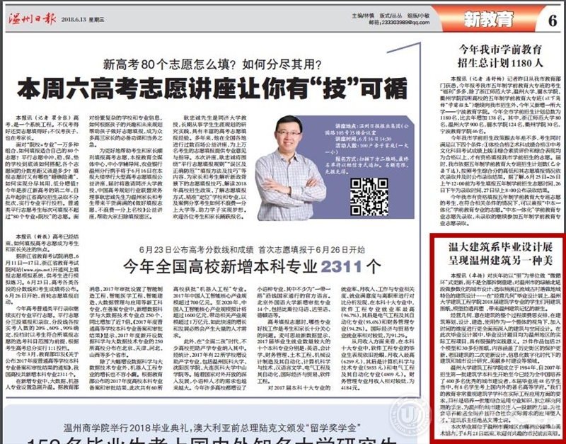 温州日报:温大建筑系毕业设计展 呈现温州建筑另一种美