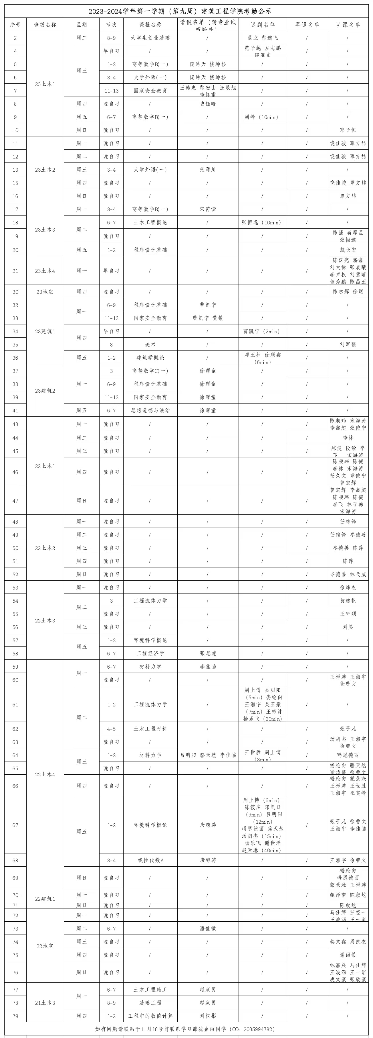 2023-2024学年第一学期(第九周)日本无码 考勤公示
