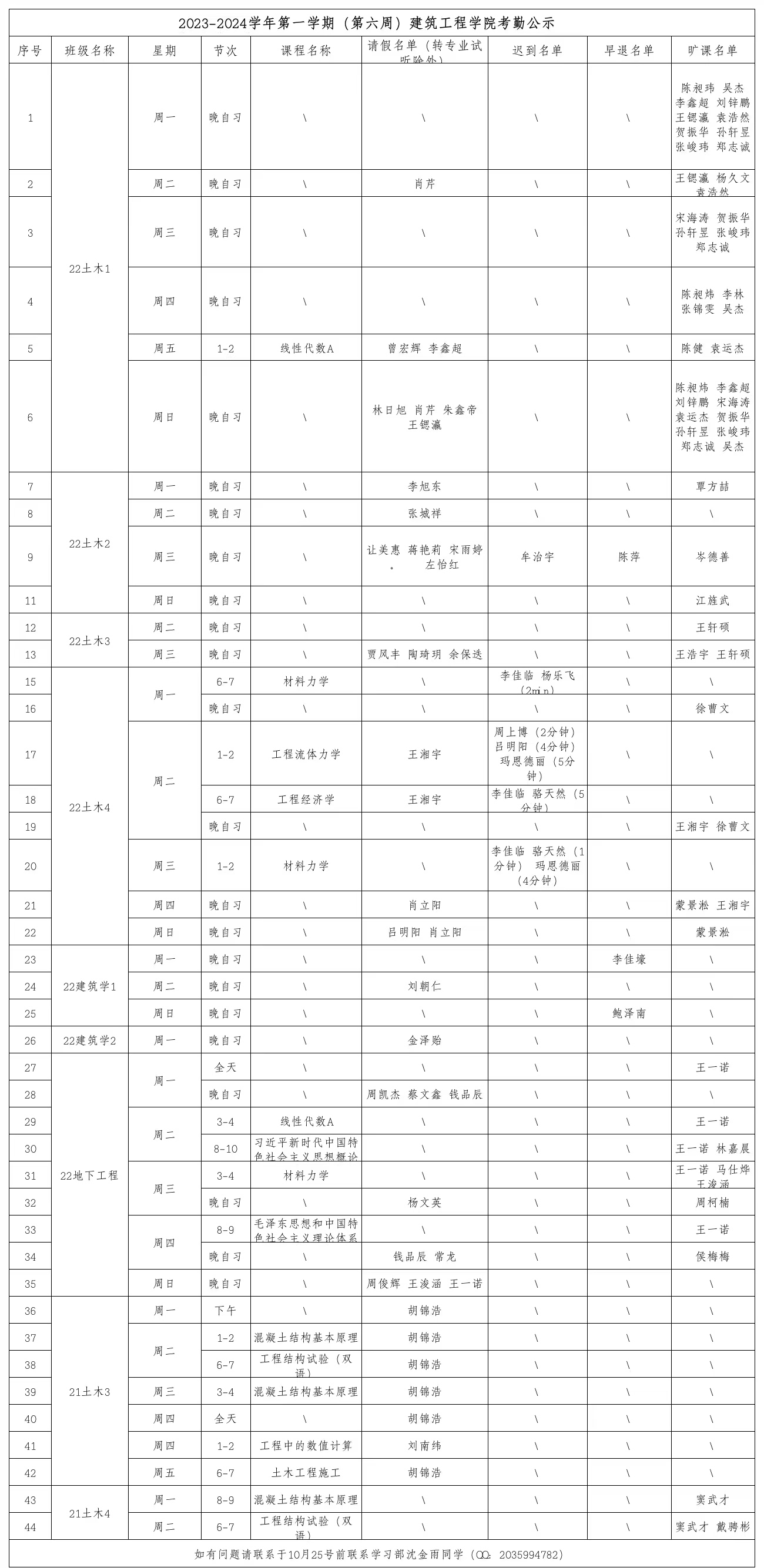 2023-2024学年第一学期(第六周)日本无码 考勤公示