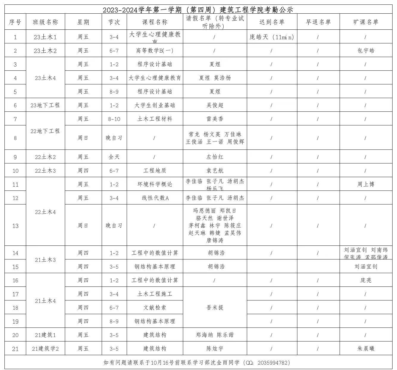 2023-2024学年第一学期(第四周)日本无码 考勤公示