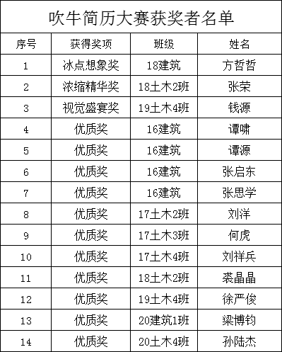 “吹牛”简历大赛落下帷幕,获奖结果已产生。现将获奖名单予以公示。
