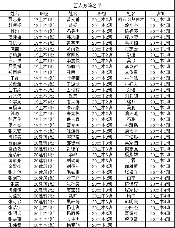在我校第四十三届运动会期间,日本无码 16建筑班谭啸同学拾金不昧,百余名学生积极参与百人方阵团队,刻苦训练。经学院研究决定,在此对谭啸同学以及参与百人方阵同学的给予通报表扬。百人方阵通报表扬名单如下: