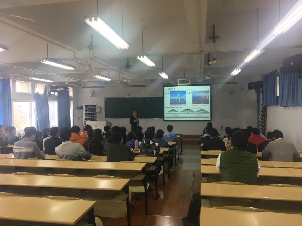 开展学术访问和交流。当天下午14:00,黄茂松教授在建工学院7D302做了题为“跨海桥梁深水基础动力响应与循环累积变形特性”的讲座。讲座由谷川老师主持,学院教师和研究生共50余人参加了讲座。