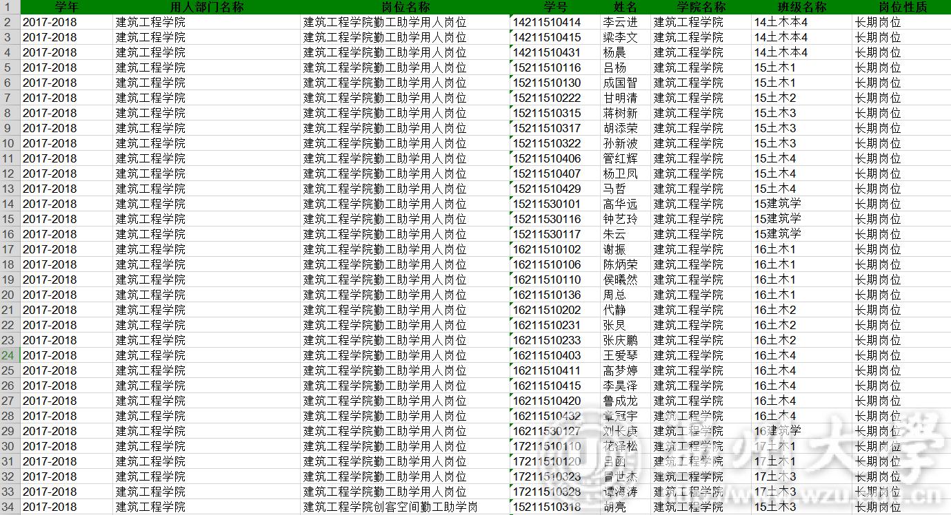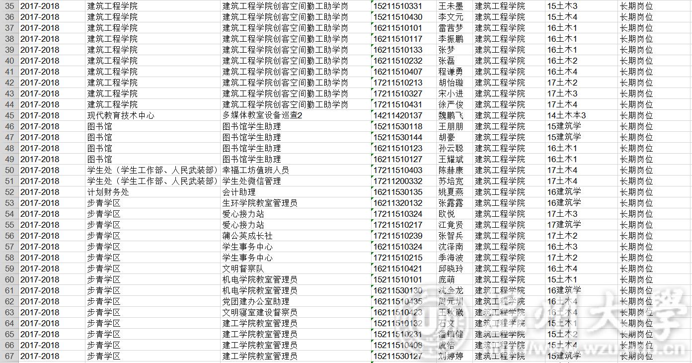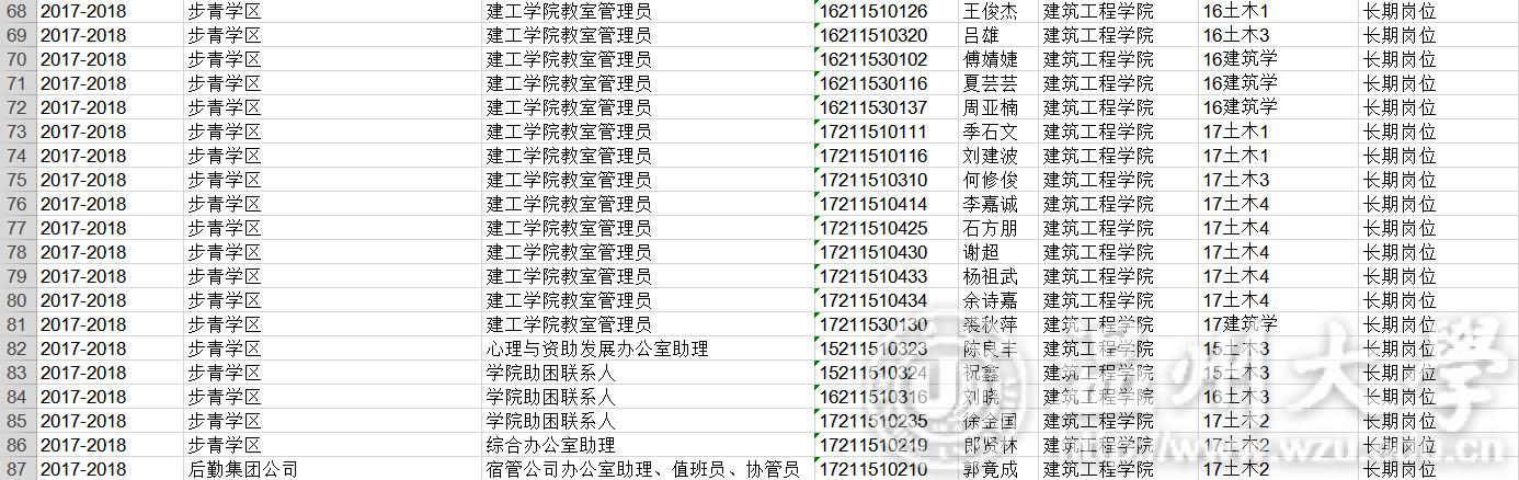 17-18学年勤工俭学名单