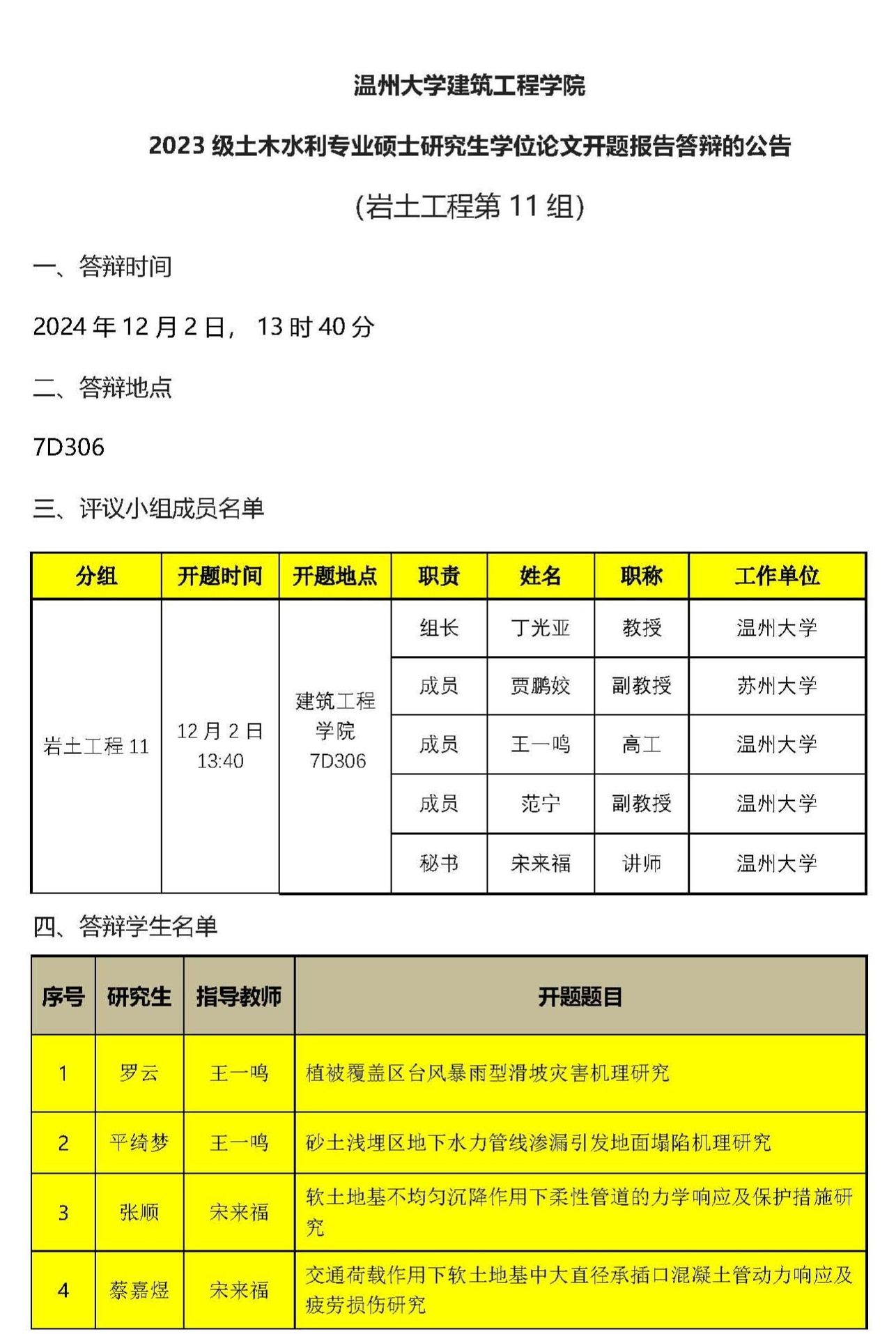 2023级专硕研究生学位论文开题报告答辩公示(十)