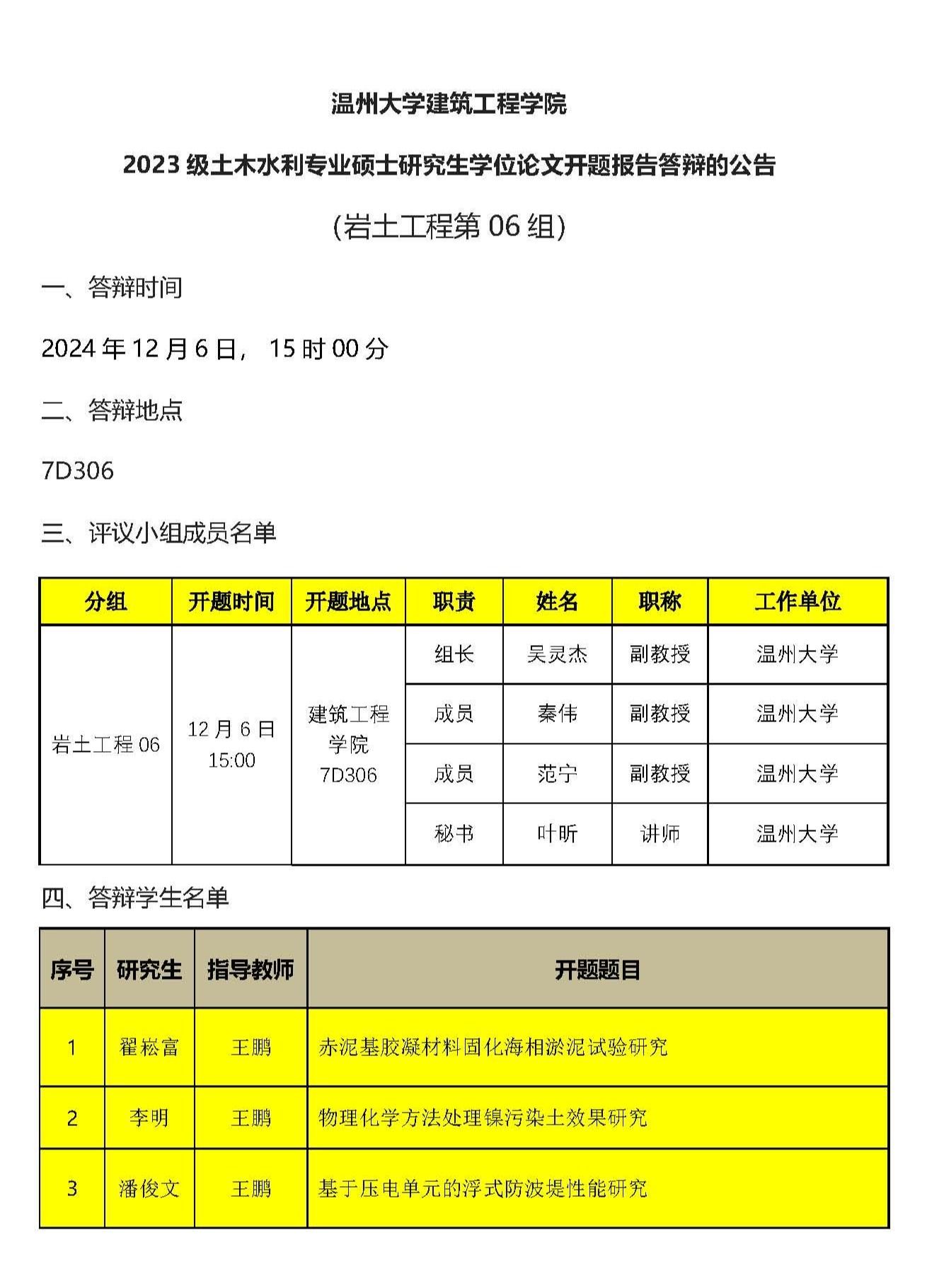 2023级专硕研究生学位论文开题报告答辩公示(七)