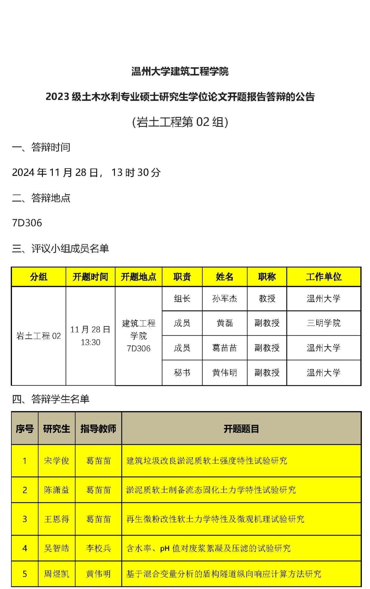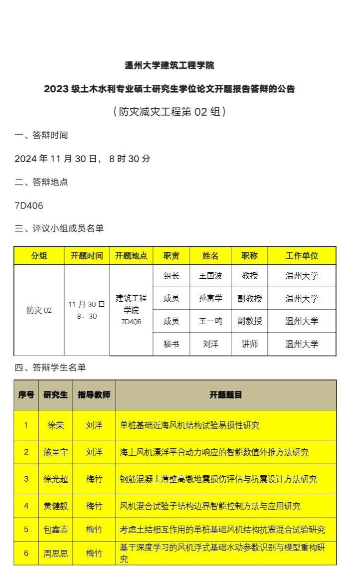 2023级专硕研究生学位论文开题报告答辩公示(三)