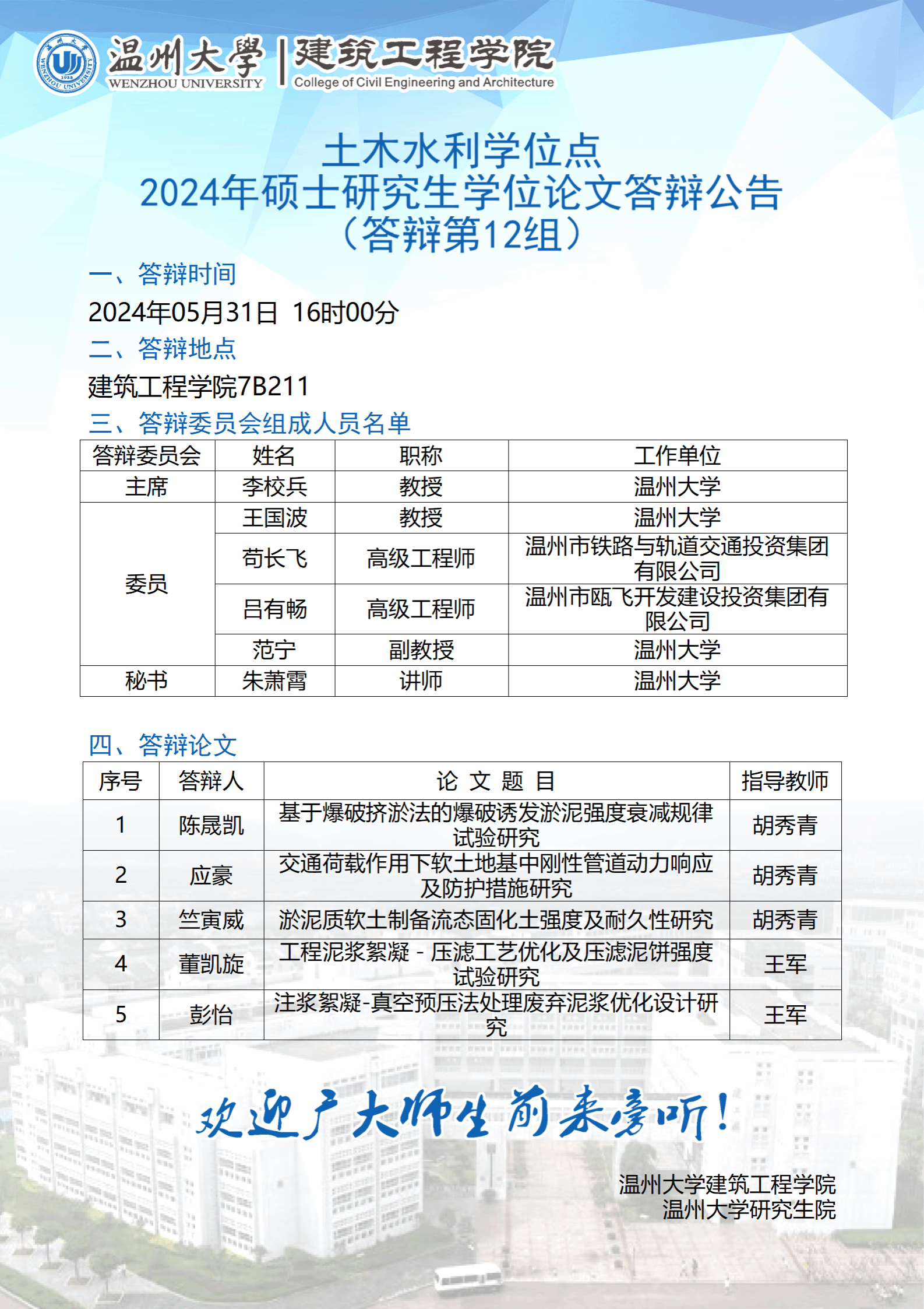 日本无码 土木水利学位点2021级硕士研究生学位论文答辩公告(三)