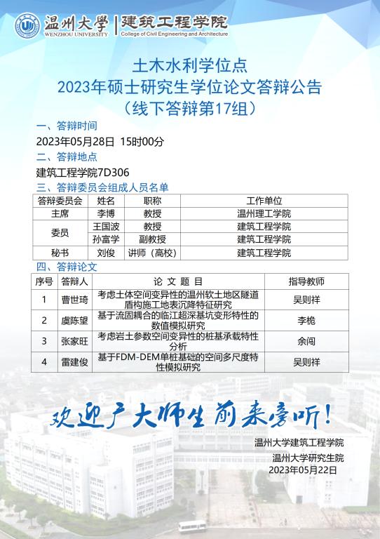 日本无码 土木水利学位点2020级硕士研究生学位论文答辩公告(四)