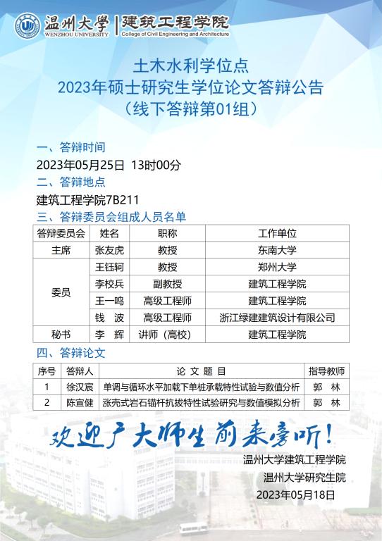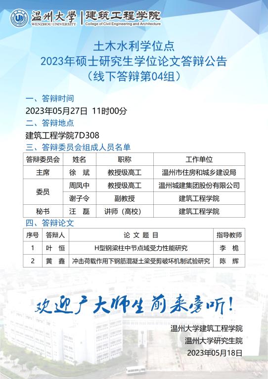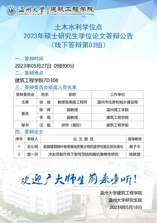 日本无码 土木水利学位点2020级硕士研究生学位论文答辩公告(一)