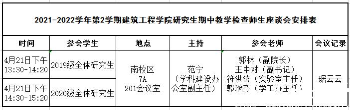 2021-2022学年第2学期日本无码 研究生期中教学检查师生座谈会安排表