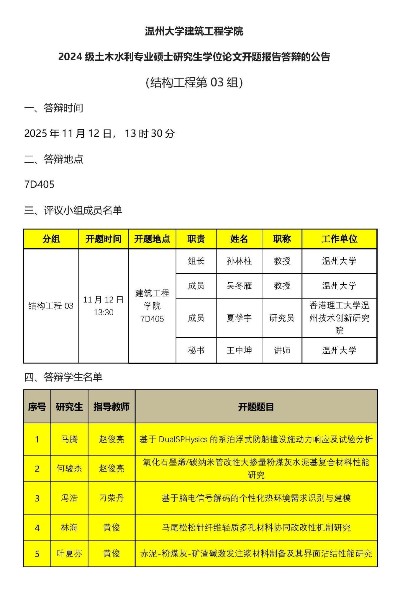 日本无码 2024级硕士研究生学位论文开题报告答辩公示(六)