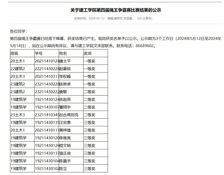 于建工楼一楼举办了一分钟跳绳比赛,即“绳王争霸赛”。