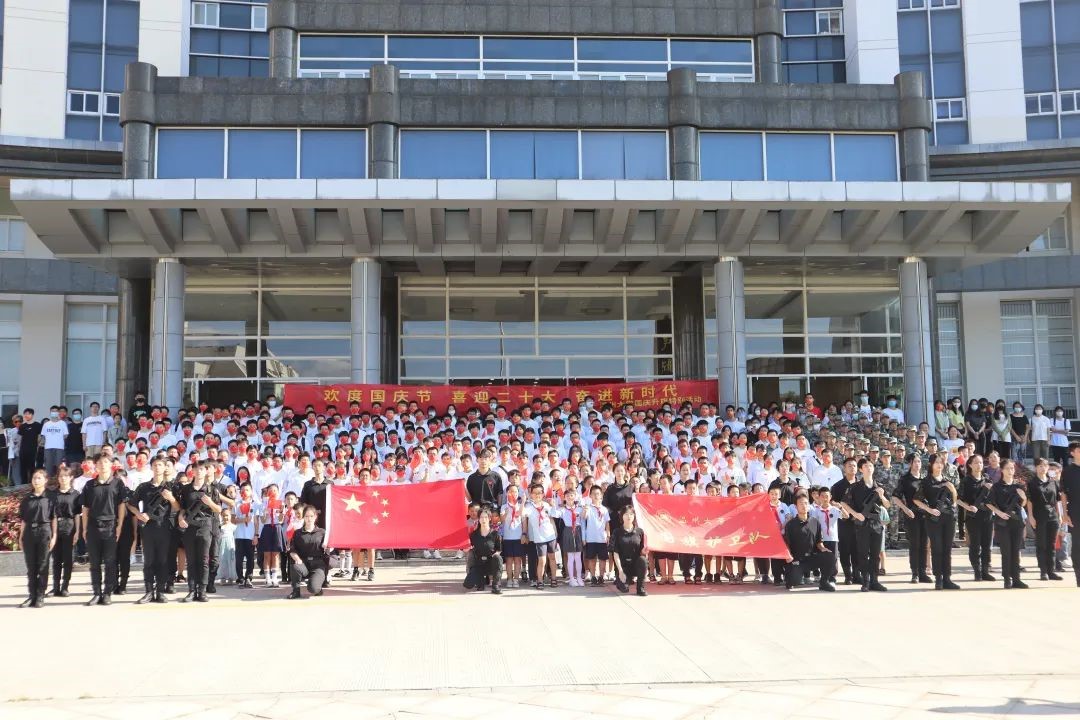 举行了2022年度国庆升旗仪式。在全场师生的注目下,英姿飒爽的国旗仪仗队迈着铿锵有力的步伐护送五星红旗进场。随着《义勇军进行曲》的奏响,数百名师生热情高涨,面向国旗行注目礼。五星红旗在晨光中冉冉升起,迎风飘扬。
