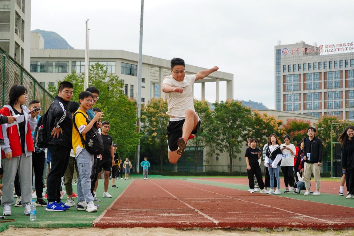 上午的比赛中,短跑运动员们犹如离弦的箭一般在跑道上飞驰,观众席上一阵阵如浪潮般的加油呐喊声是激励他们奋勇向前的动力。田赛运动员们为了得到更好的成绩,拼尽全力,即使失败也毫不气馁,一次又一次地向目标跨出坚定的步伐。下午,在众人瞩目的长跑比赛中,运动员们坚持跑完全程,超越自我,是其意志力的体现,亦是对体育精神的诠释,令人敬佩。随后,趣味运动会拉开了序幕,各个班级的大部分同学都参与其中。在4*100m接力、跳长绳、四人五足、拔河这四个项目中,运动员们拧成一股绳,班级中没有参与的同学都在场边加油鼓劲,使在场的人都感受到了集体的力量。最后,本届运动会在所有团学工作人员的合照后落下了帷幕。