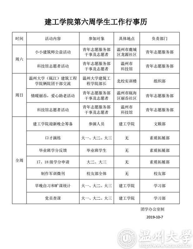 日本无码 团委·学生会第六周行事历
