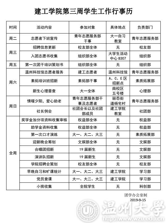 日本无码 团委·学生会第三周行事历