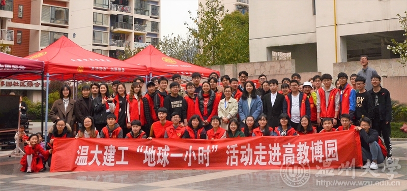 校门,来到了高教博园社区。本次活动意在宣传“地球一小时”的环保思想,让环保意识走进的生活