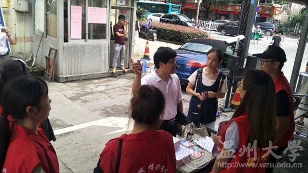 尔后,学院老师们来到实践地对队员们进行了亲切慰问,他们看到此次实践与同学们的专业想结合也甚是欣慰。校领导在慰问过程中提醒同学们要传承爱心伏茶亭的精神,有爱心的实践,同时要从细节处学习,将大家学到的专业结合到实践活动当中去。当实践队队员陈锋进行发防台宣传单时,一名带孩子的女士没有接收宣传单,当他正疑惑时,老师注意到了这一细节,告诉队员在发放宣传单过程中也要学会察言观色。因为那位母亲一手拉着孩子,一手拿着雨伞,行色匆匆的样子,几乎没空拿传单,所以发传单也是一门学问。