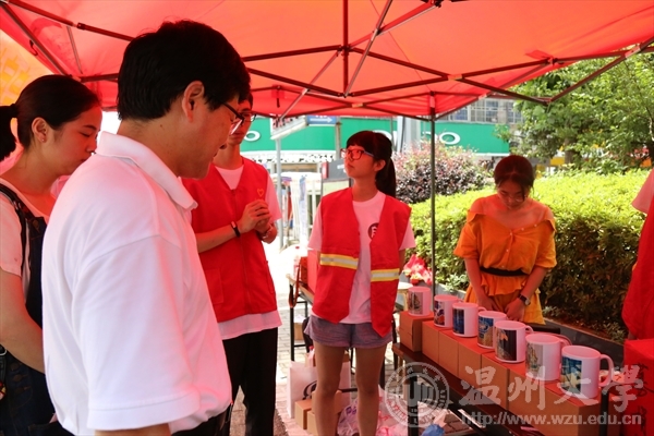 紧接着刘书记和王书记来到茶山镇梅泉社区义卖场慰问启扉实践队的队员们,对实践队目前的成绩给予了充分的肯定,就队伍建设方向提供了极具建设性的建议,刘书记指出“我们的实践队要与专业结合,义卖产品也能与建工因素相结合”。对我们未来的活动开展起到导向性作用!除此以外,老师也急切关心队员的安全问题,炎炎夏日,实践队内人心暖暖。