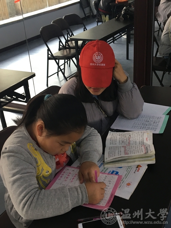 志愿者到达目的地。门还没开,却已经有两个孩子等在门口。不久,孩子们陆续到来,志愿者们安排好桌椅,安顿好每一个孩子。虽然这次大部分的志愿者们都没有志愿的经历,但只是少许的尴尬以后,很快就和孩子们融洽在了一起。志愿者们发现,每个孩子的性格和年龄是不同的。有的吵闹,有的需要安静的学习。志愿者们就与家长协商,将安静的孩子们和低龄的孩子们区分开管理。使得孩子们都能好好的得到学习的空间。志愿者们还积极回答小朋友们的问题,力求精准的给出正确的答案。