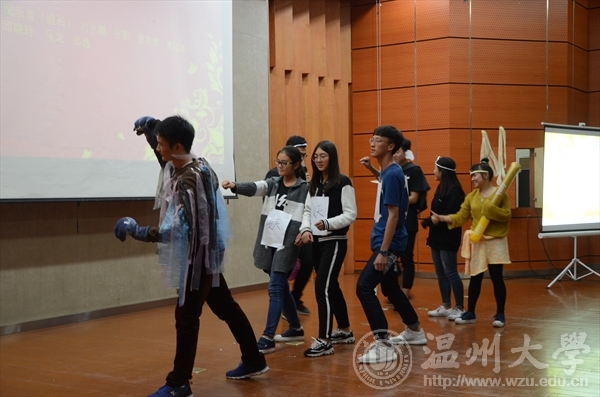 首先由程一芮、田贺实同学为大家献上了一段开场热舞,随着音乐响起,全场气氛被瞬间点燃。之后,由建工团学新生干事、新生班委组成的九个小组分别为大家上演了以《白蛇传》、《红楼梦》、《大话西游》为主题的话剧,其中最值得称道的是由第一组带来的《白娘子寻夫》,小青扮演者男扮女装,造型奇特,让人忍俊不禁,每个人拍手叫好。每一场剧目大家都准备得十分充分,表演也都非常精彩,在各个剧目之间主持人安排了几个有趣的小游戏,以及打电话抽奖环节,同学们的参与性和积极性都非常高,现场的气氛也十分活跃。