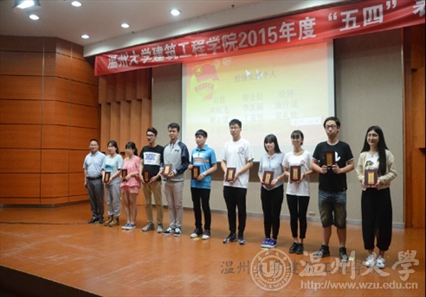 过去一年的成绩。叶正飞副书记及各位班主任代表按照“五工文化”分类,具体对2015年度荣获国家、省、市、校级各类奖项的团体及个人进行了表彰,台下掌声此起彼伏,大家无不为身边的榜样而感到自豪。期间国奖获得者、建工学霸、idol学姐韩海雁分享自身成长经历,令在场的学弟学妹受益匪浅。会上,院团委学生会及各班的活动分享,让会场充满了温情与感动!