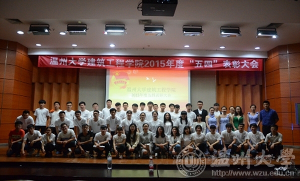 2015年度“五四”表彰大会于岩松堂雁山厅隆重举办。到场嘉宾有院党总支副书记叶正飞、班主任代表杨克家、郭林、李校兵、马建军以及各班学生代表近400人。