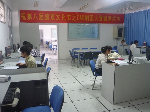 此次CAD制图比赛吸引了许多同学参加,主要以08级和09级为主,比赛分成2场进行。比赛要求选手在2小时内用计算机绘制规定的建筑施工图。比赛现场,同学们目不转睛的盯着屏幕,熟练而又紧张地操控着鼠标,一个个建筑图形展现在屏幕上。