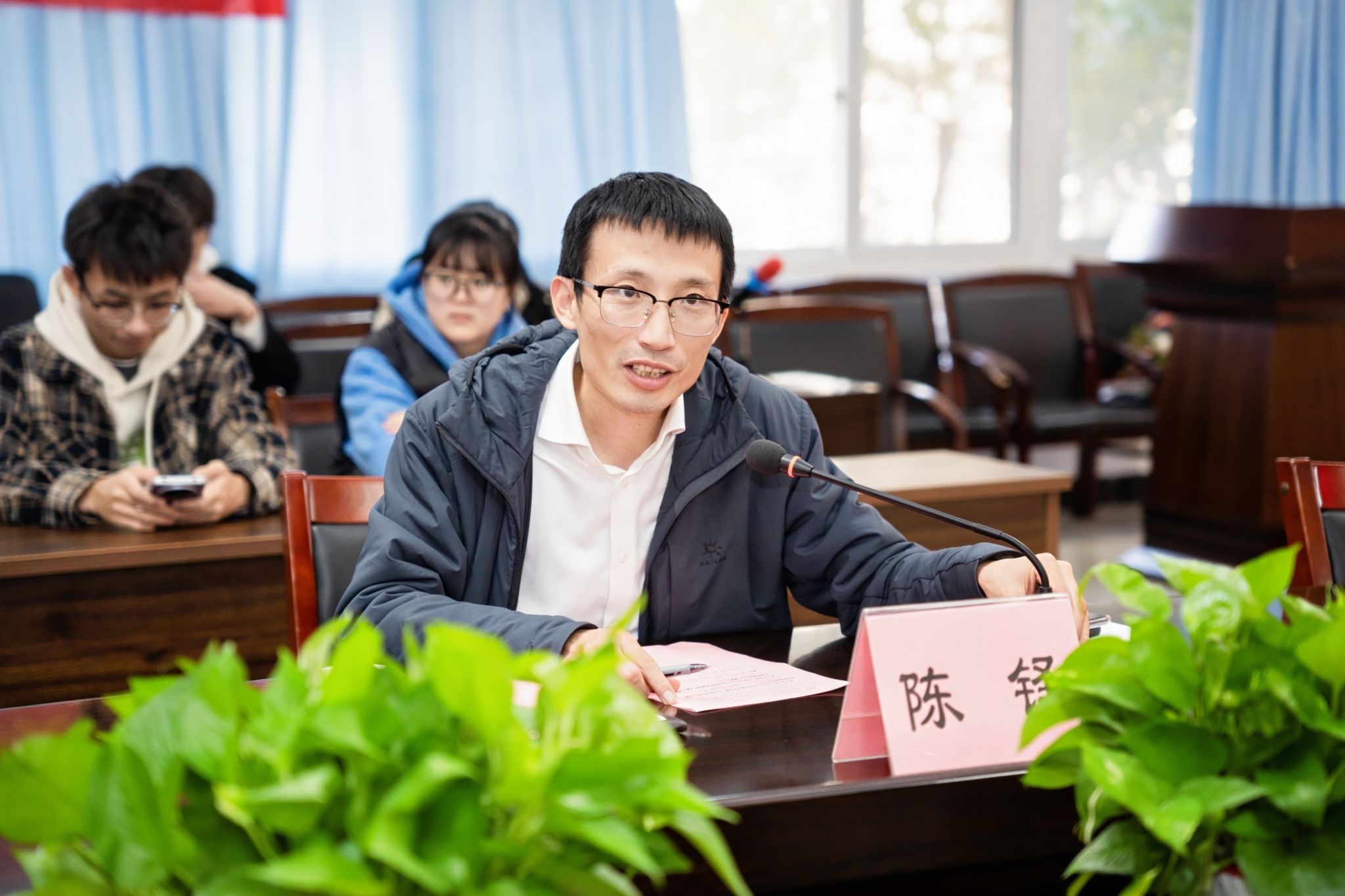陈建德先生讲话。他讲到同学们很幸运,生活在幸福的年代,拥有雄厚师资力量和良好的校园氛围,希望大家能珍惜现有资源,努力学习,刻苦钻研,助推国家解决技术“卡脖子”问题;要有责任心,关心社会,关心国家大事,成为一个爱国家、爱家人、爱自己的人!