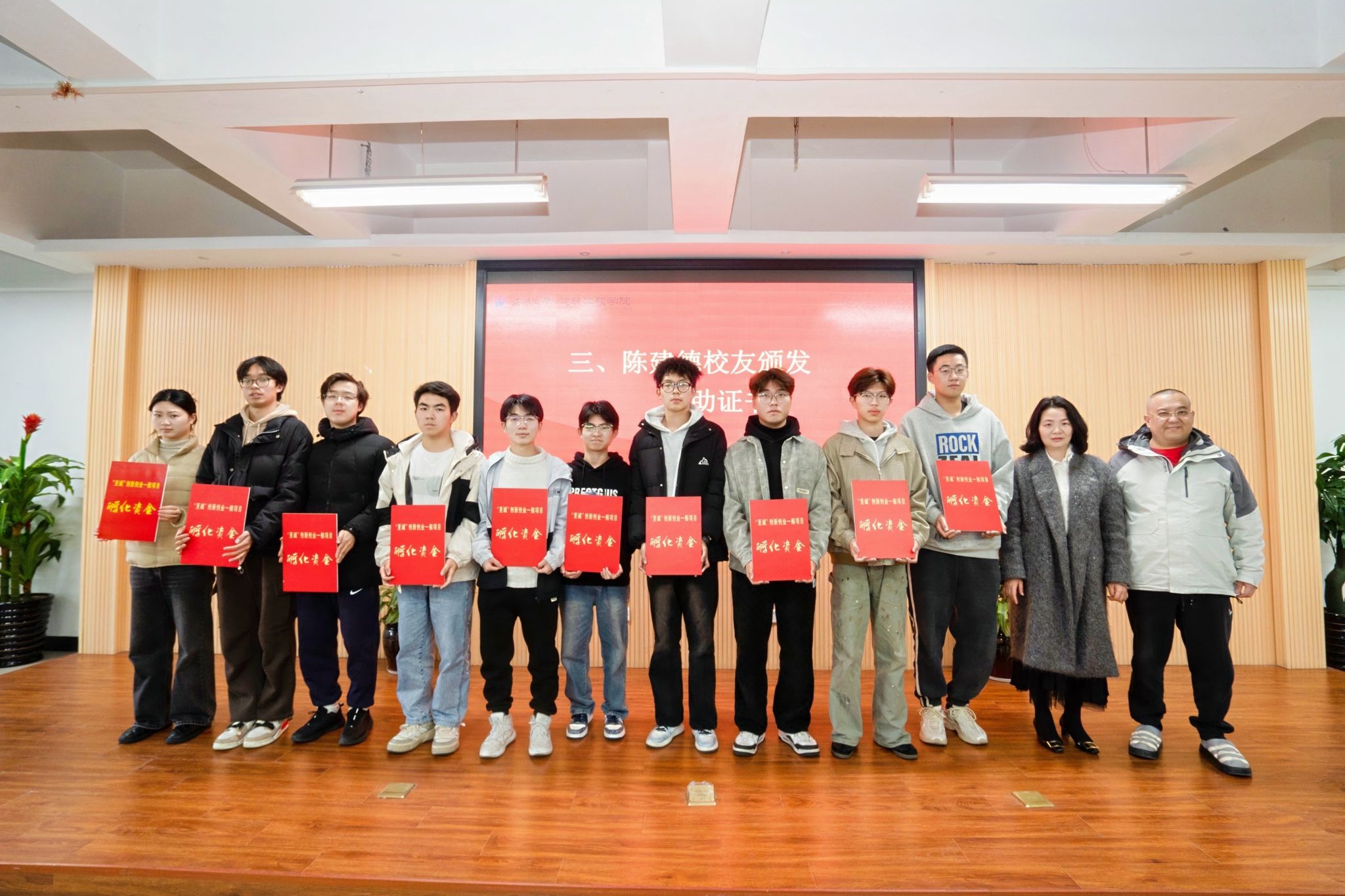 陈建德校友夫妇分别为4个创新创业重点项目、10个创新创业一般项目、2个创新创业重点团队颁发资助奖牌。